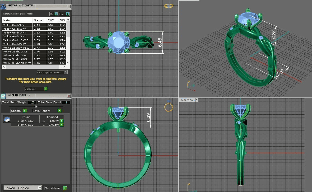 - Diamante central: 1 Ct redondo (6.5mm de diámetro)