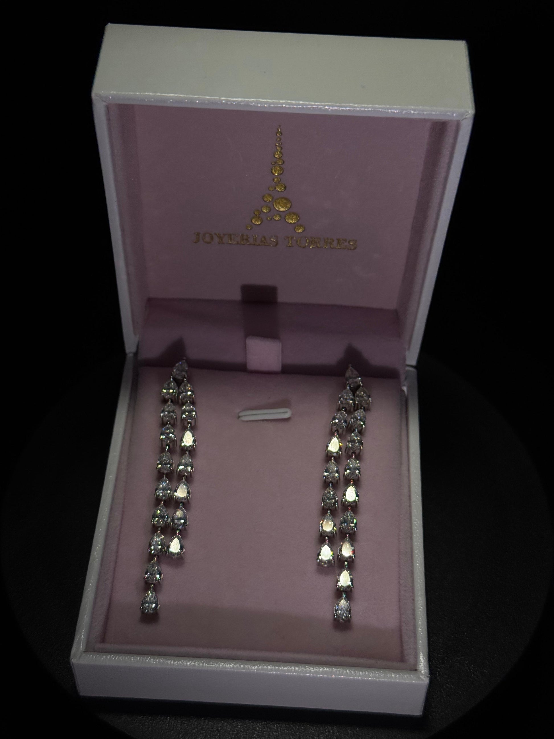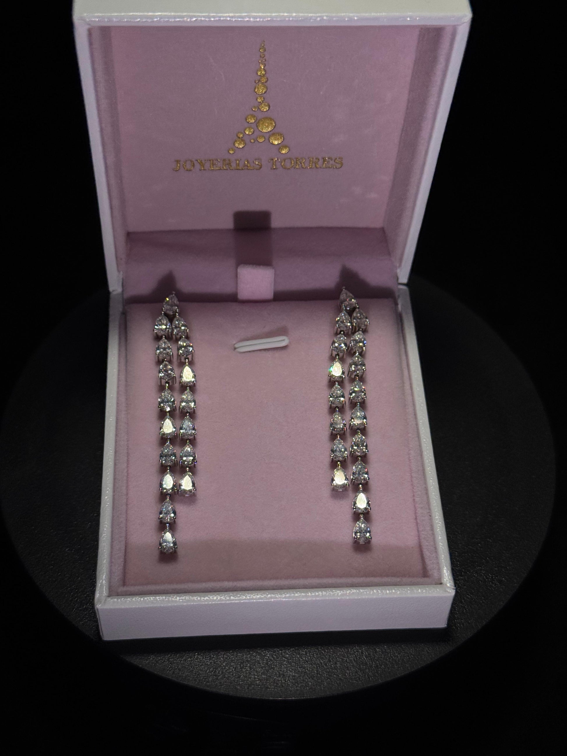 Aretes Colgantes de Diamante Lab Grown 6.80ct en Oro Blanco 14k
