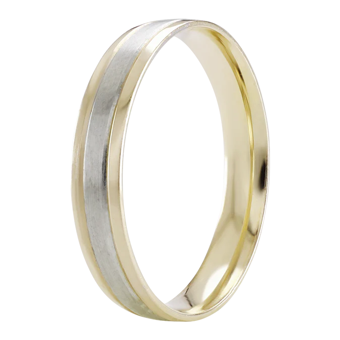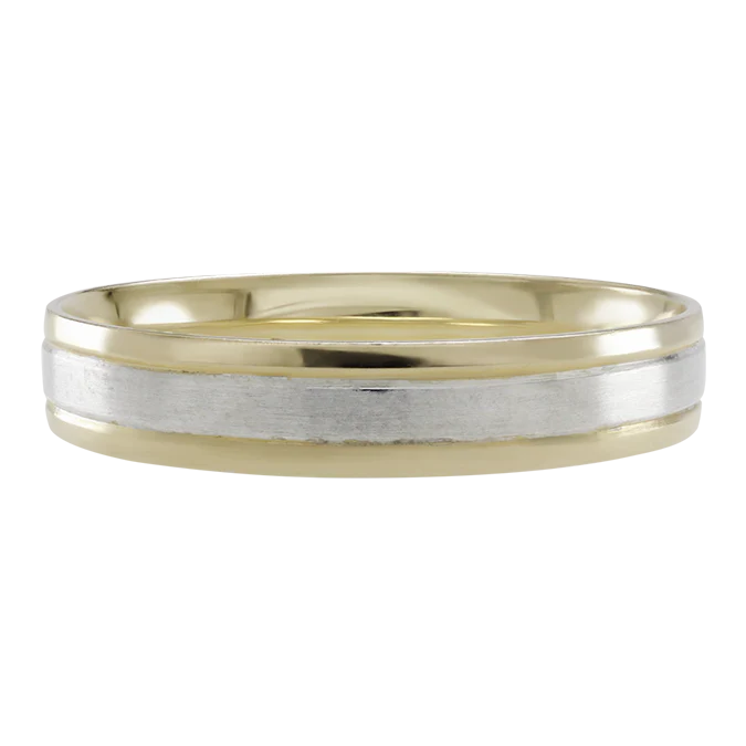 Argolla de matrimonio de Oro amarillo y Blanco de 14K, Comfort de 4mm de ancho.