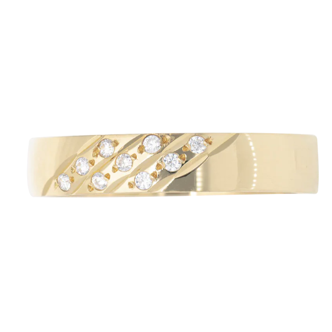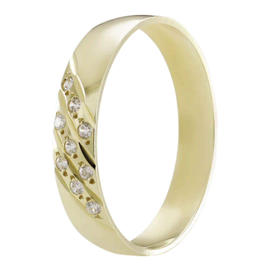Argolla de matrimonio de Oro amarillo de 14K, Hueca de 4mm de ancho con Zirconia.