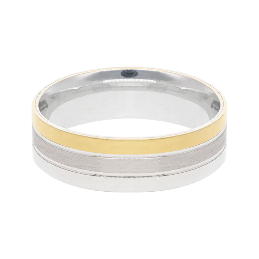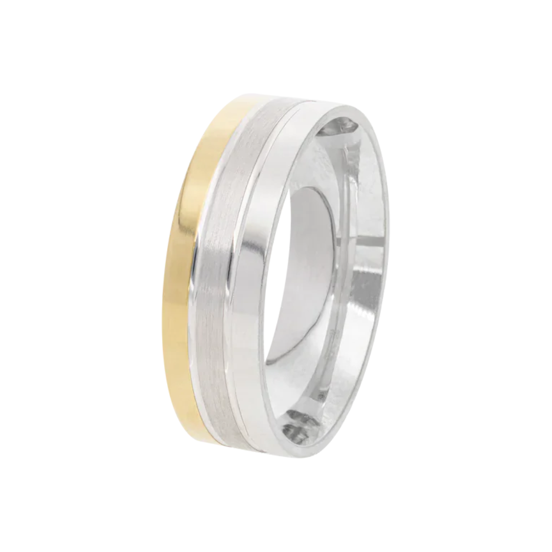 Argolla de matrimonio de Oro Amarillo y Blanco de 14K, Comfort de 5mm de ancho.