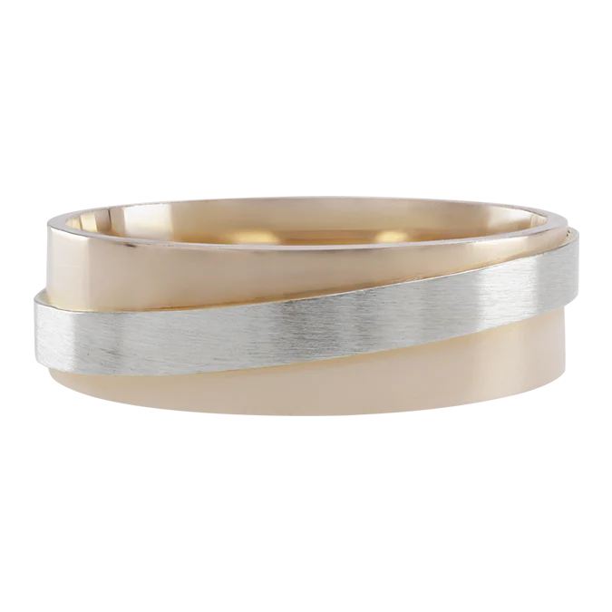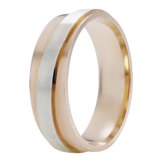 Argolla de matrimonio de Oro Rosa y Blanco de 14K, Maciza de 5mm de ancho.