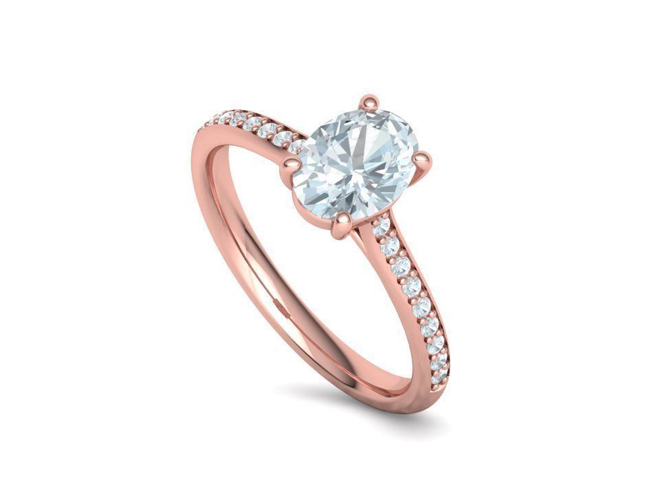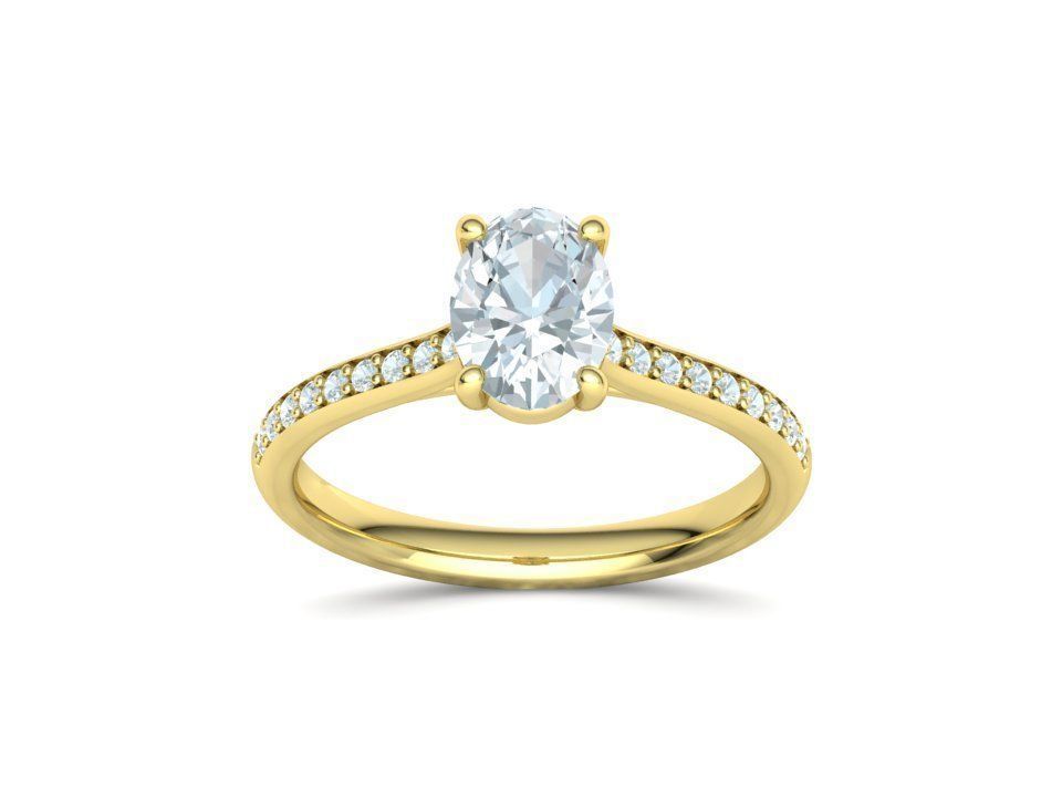 Anillo de Compromiso de Oro con Diamantes Central Ovalada Brillante