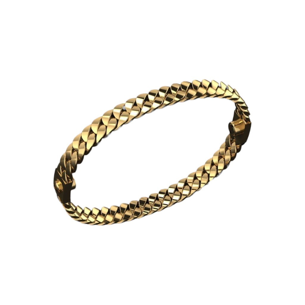 ¡Luce elegante y audaz con el Atractivo Brazalete Cuban de Oro Acompañado! Hecho con oro de alta calidad, este brazalete es el accesorio perfecto para complementar cualquier atuendo. Su diseño llamativo y duradero lo convierte en una pieza imprescindible en tu colección de joyería. ¡Haz una declaración de estilo con este brazalete!