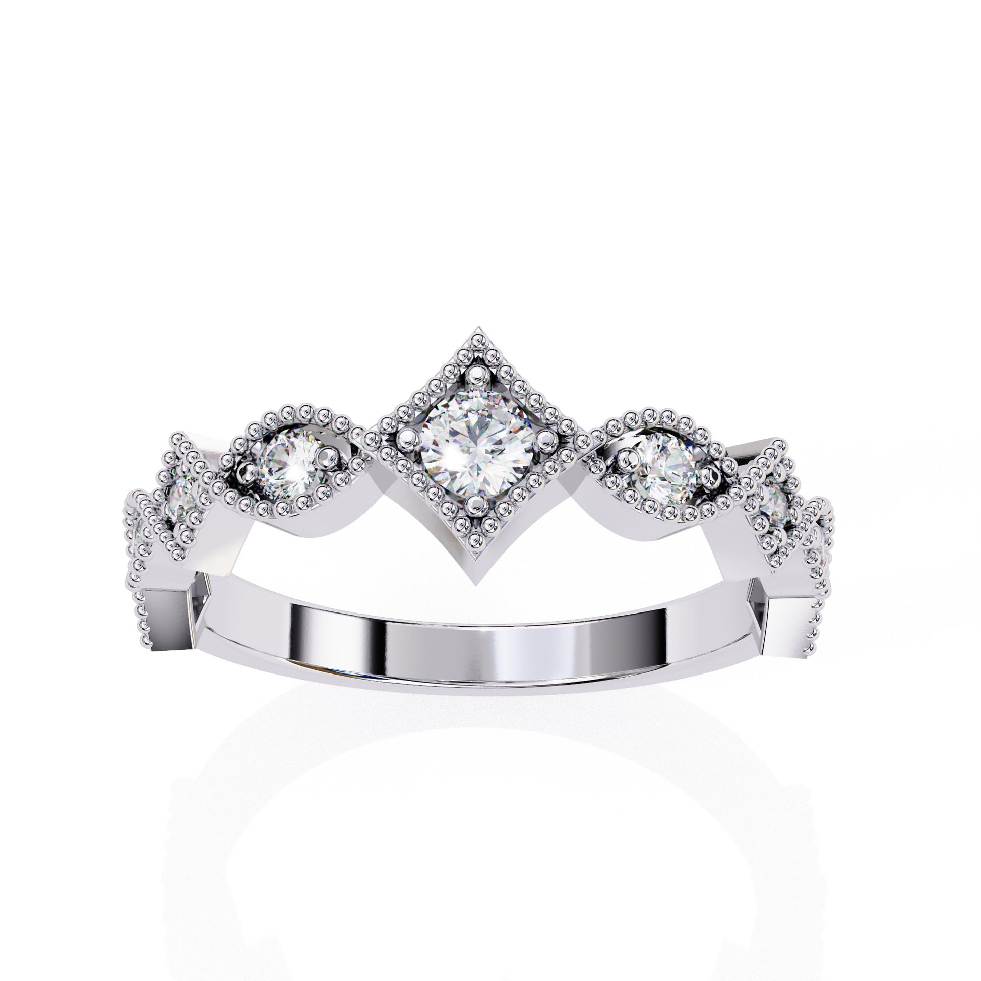 El punto focal es un deslumbrante diamante central corte redondo de 0.15 ct y 3.42 mm, asegurado magistralmente por un engaste de uñas que permite la máxima refracción de luz. La banda se enriquece con una cuidadosa selección de piedras laterales graduadas que fluyen armoniosamente desde 1.60 mm hasta 2.10 mm, aportando un brillo excepcional y dinámico a la estructura. Con un diámetro interno de 17.13 mm, esta joya ofrece un equilibrio perfecto entre solidez y confort. El peso total de 0.33 ct en gemas convierte a este modelo en una declaración de lujo atemporal ideal para celebrar momentos inolvidables.