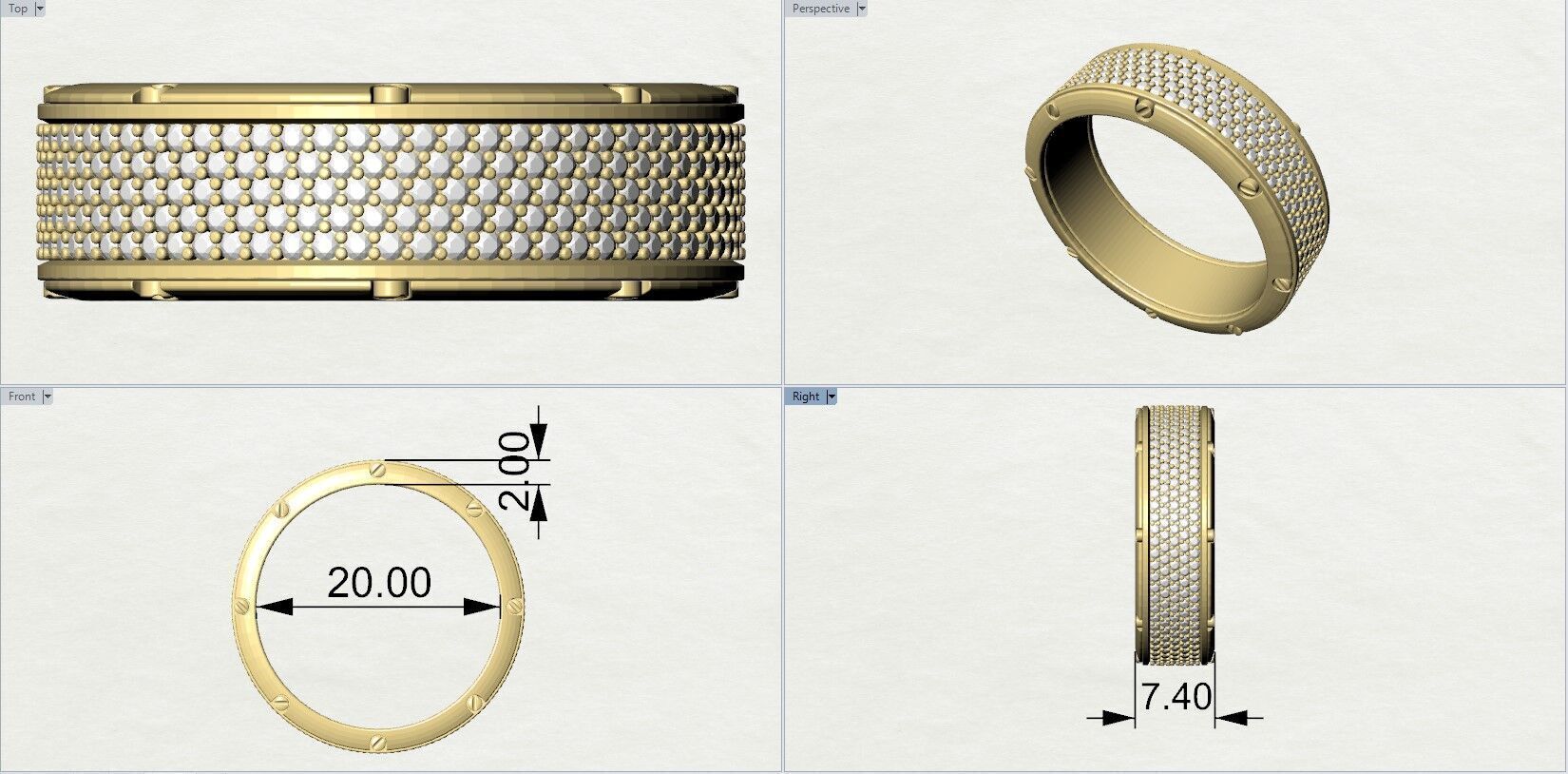 Anillo Redondo de Oro Amarillo para Caballero Recubierto de Incrustaciones
