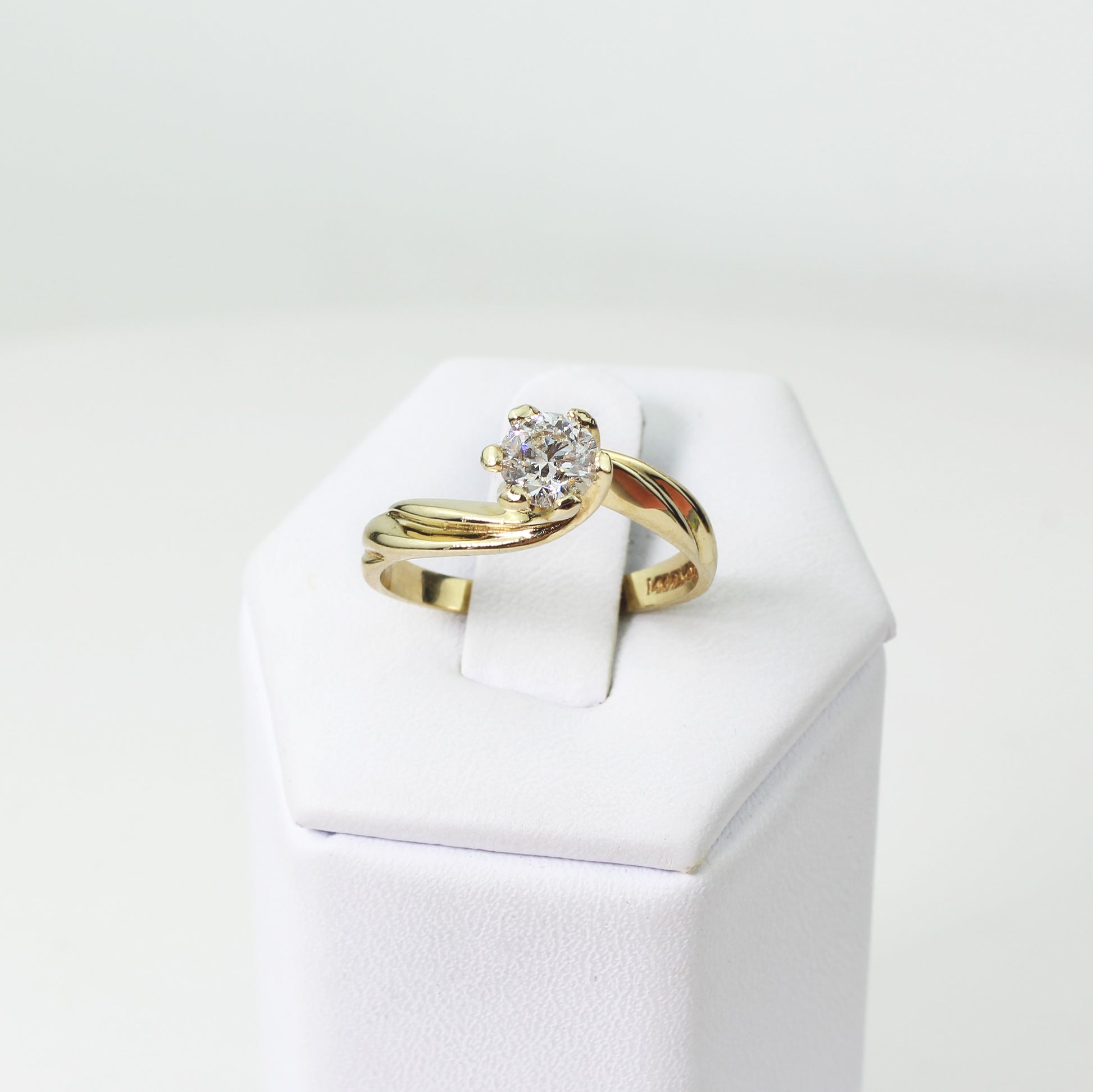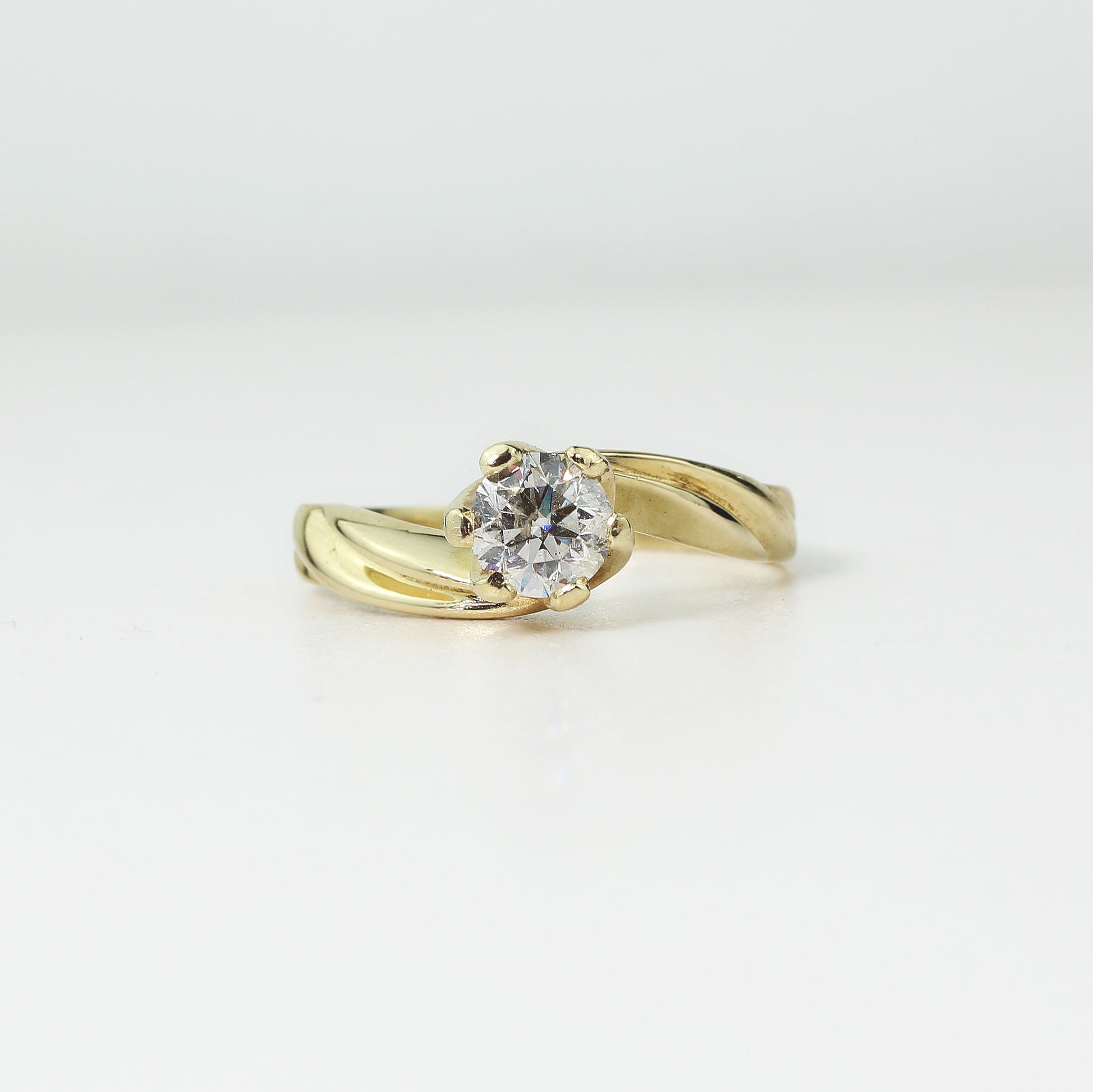 Anillo Solitario de Diamante Natural Montado en Anillo de Oro Amarillo 14k