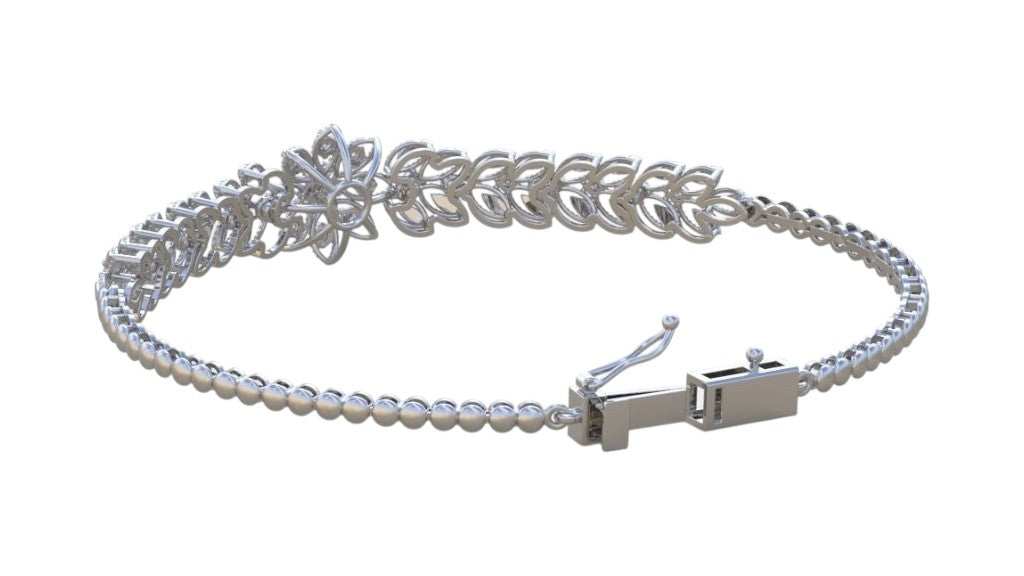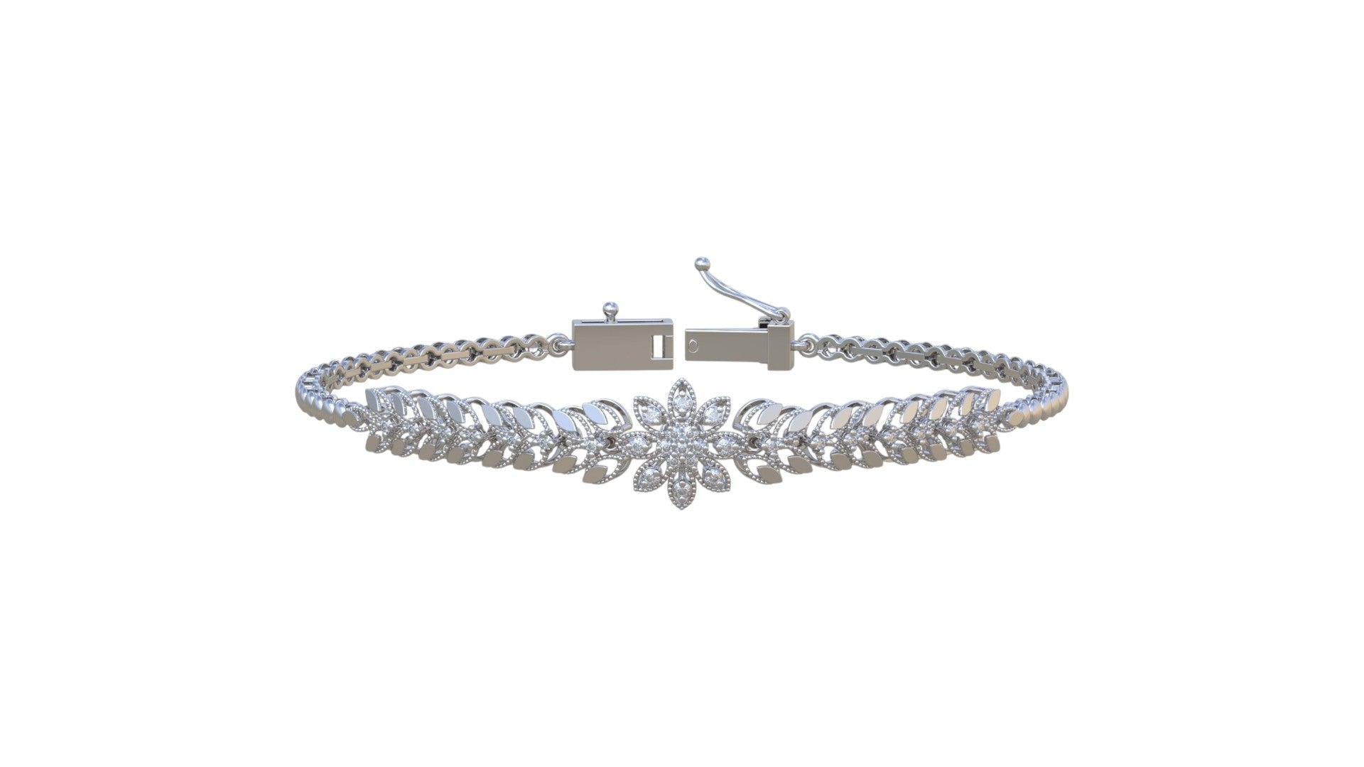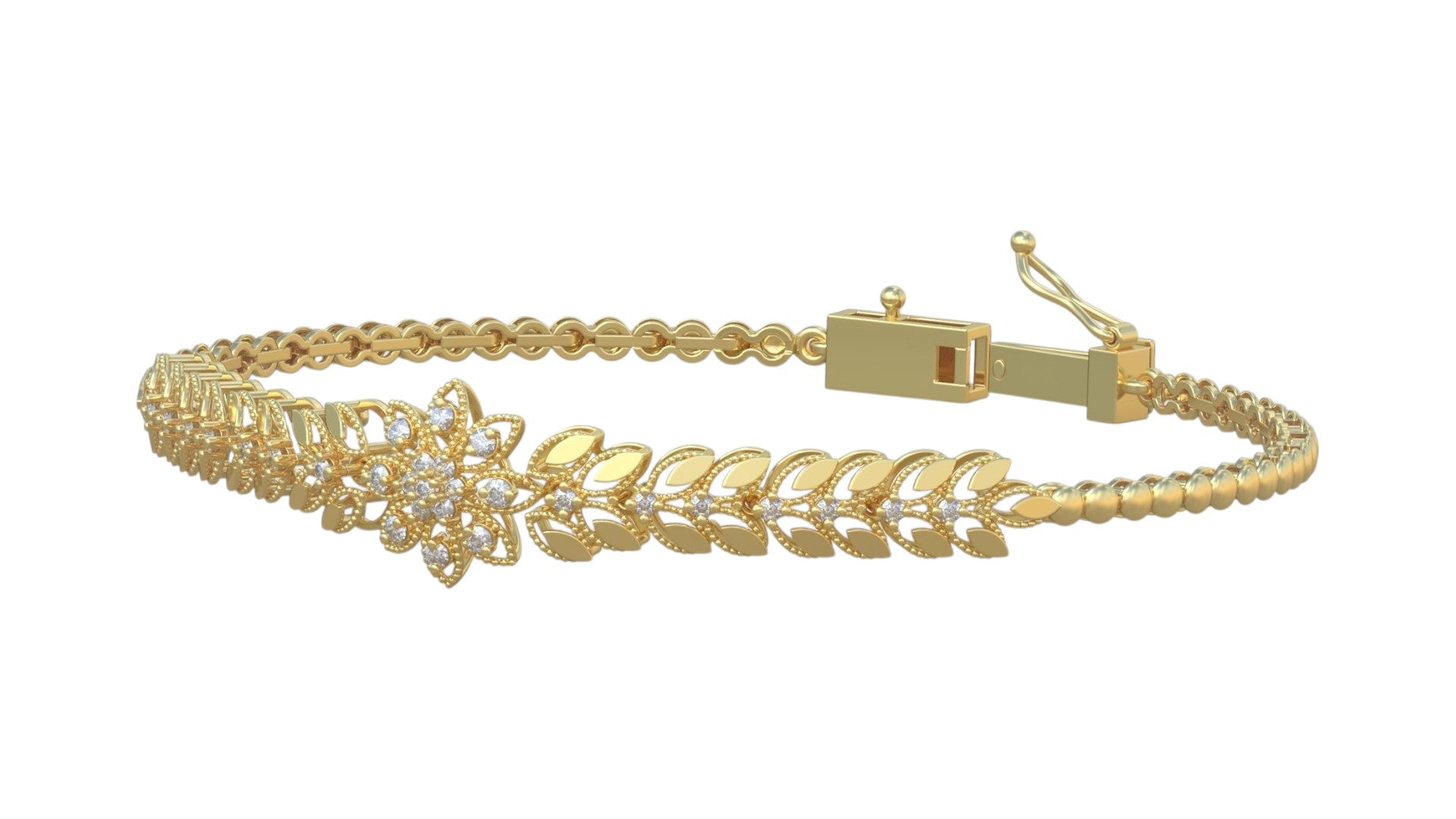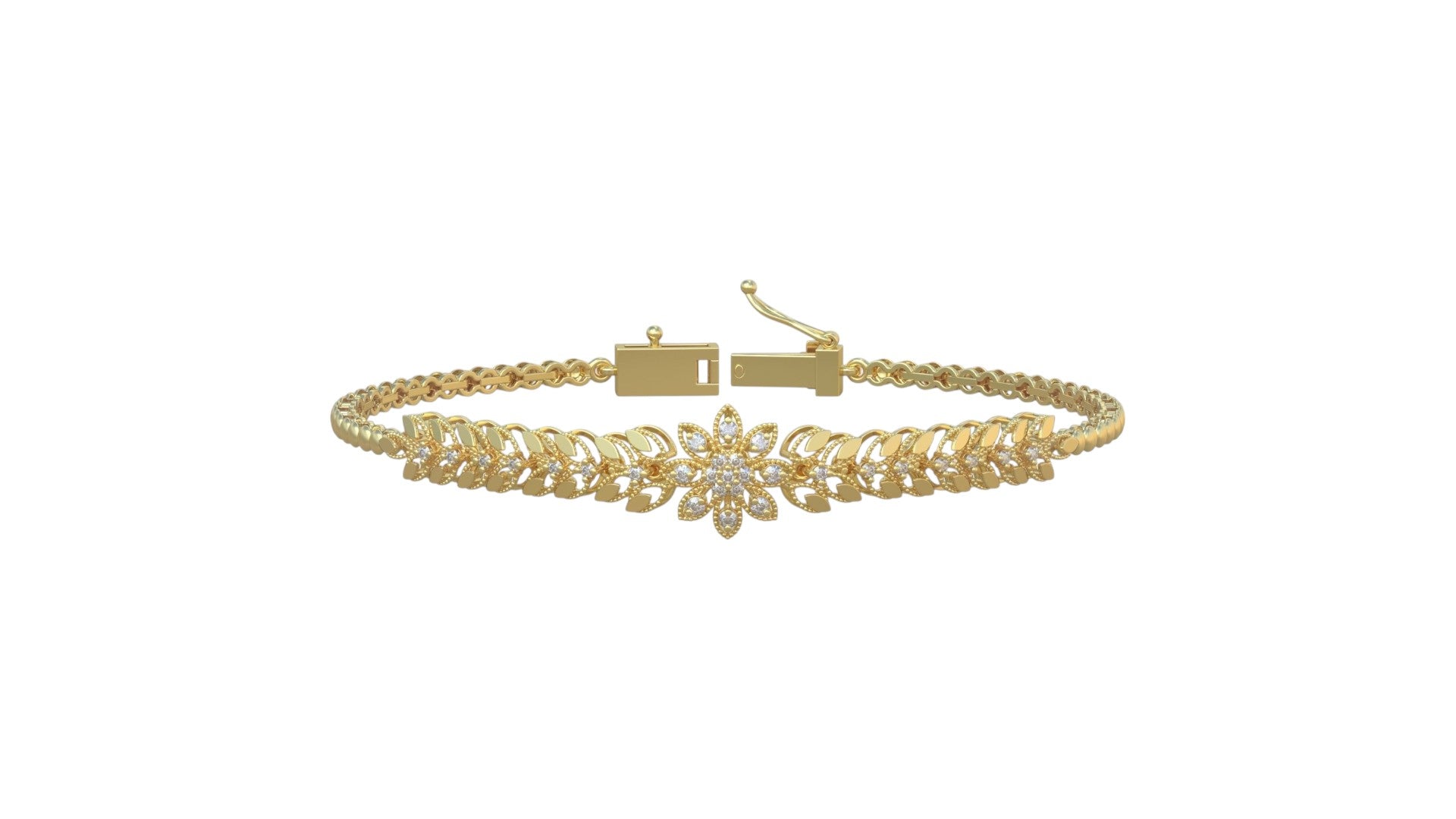 Impresionante Brazalete de Oro con Adorno Flor Acompañado de Incrustaciones