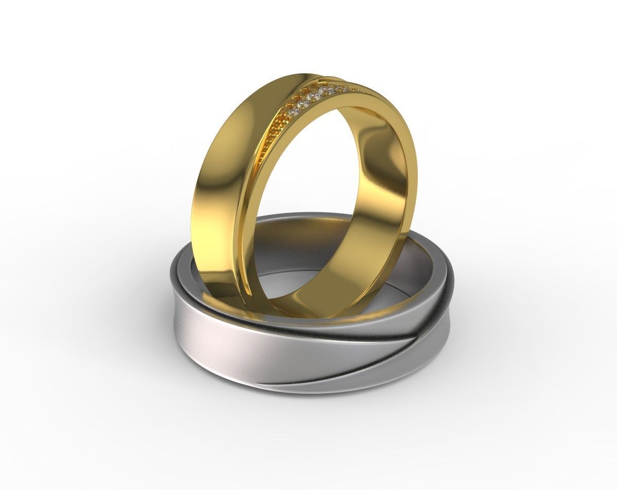 Juego de argollas perfecto para sellar su amor y compromiso. Hechas de oro 14k, una de estas argollas esta adornada con un detalle de hermosos diamantes, lo que las hace un contraste único entre ellas. Con un diseño distinguido y de alta calidad, estas argollas son la opción perfecta para una ocasión especial.