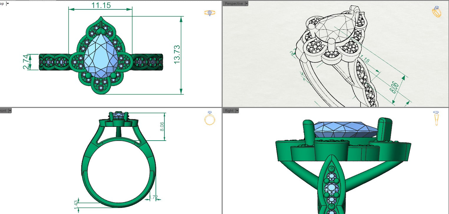 Anillo de Compromiso de Oro con Diamantes Central de Pera
