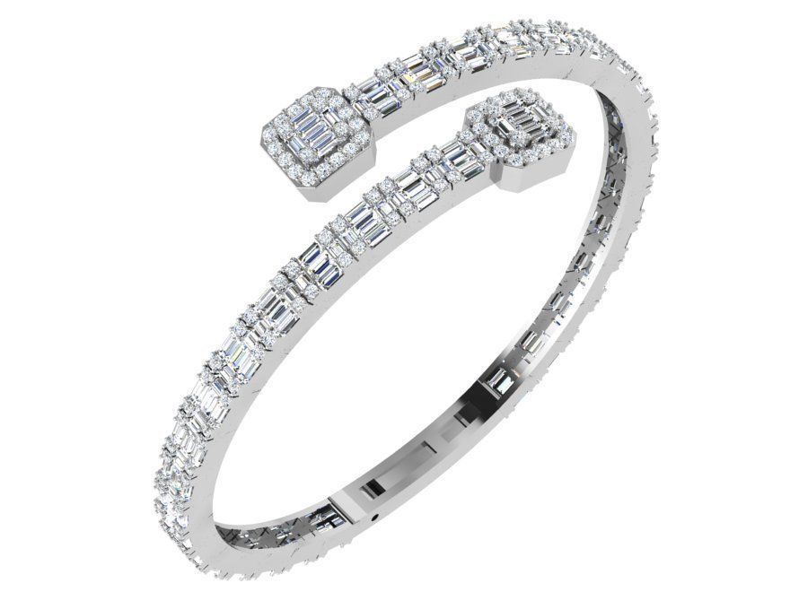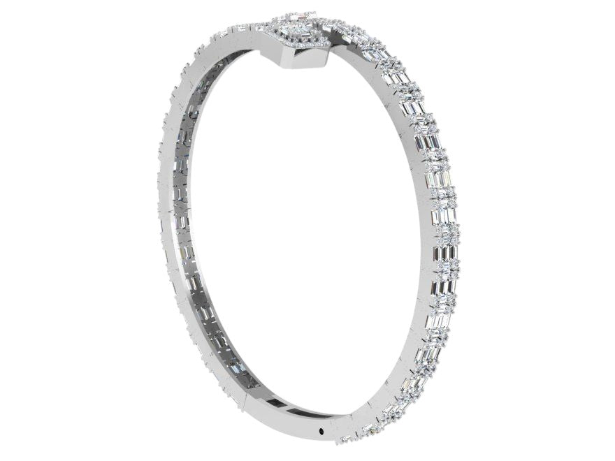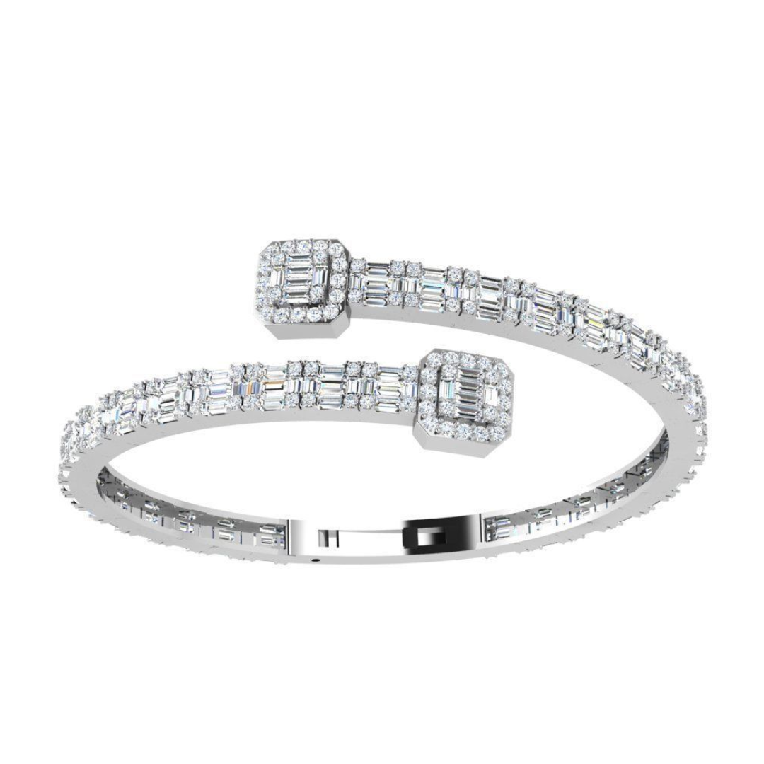 Modesto Brazalete de Oro Blanco 14k Recubierto de Incrustaciones Redondas y de Corte Bagguete