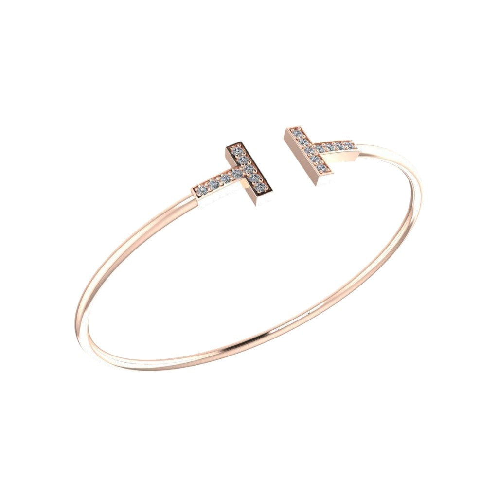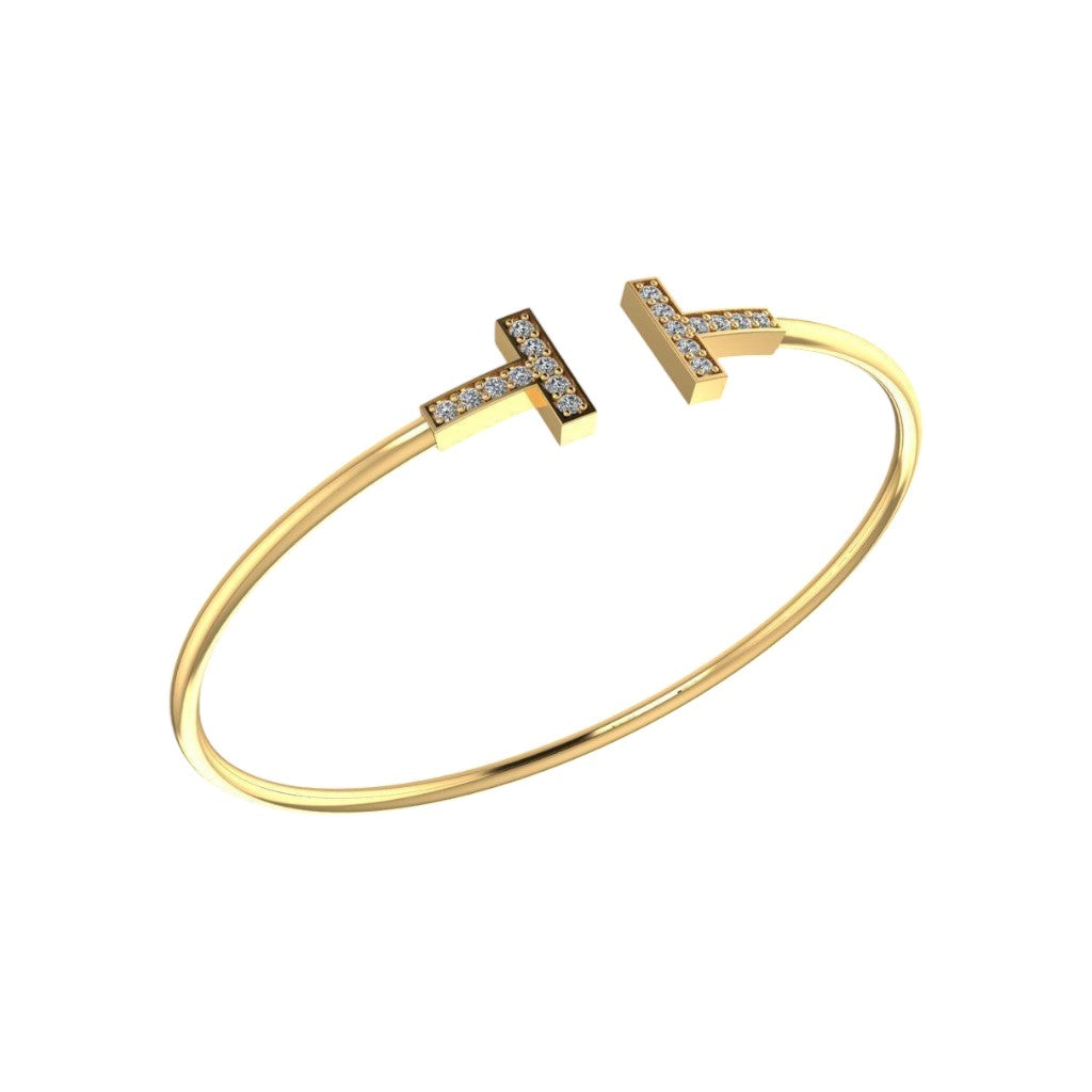 Ostentoso Brazalete Tiffany T de Oro Acompañado de Incrustaciones