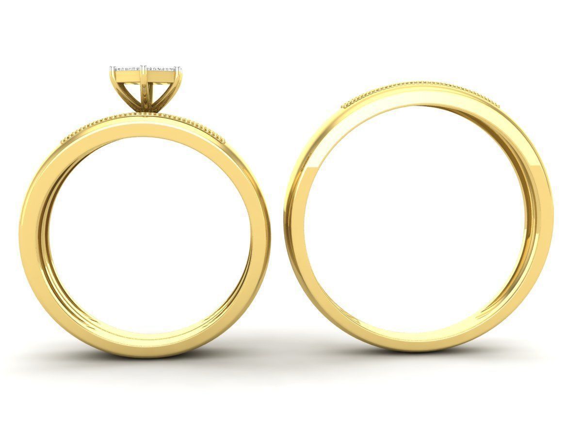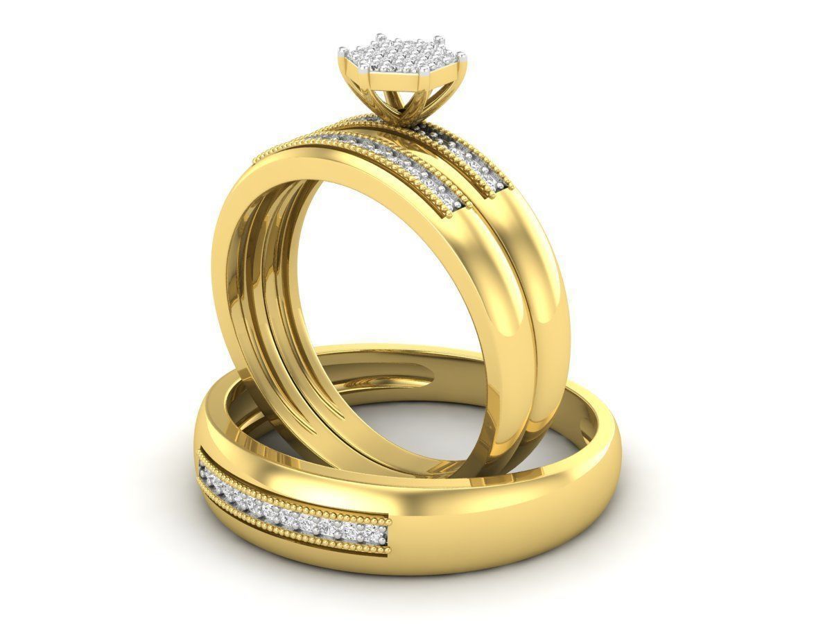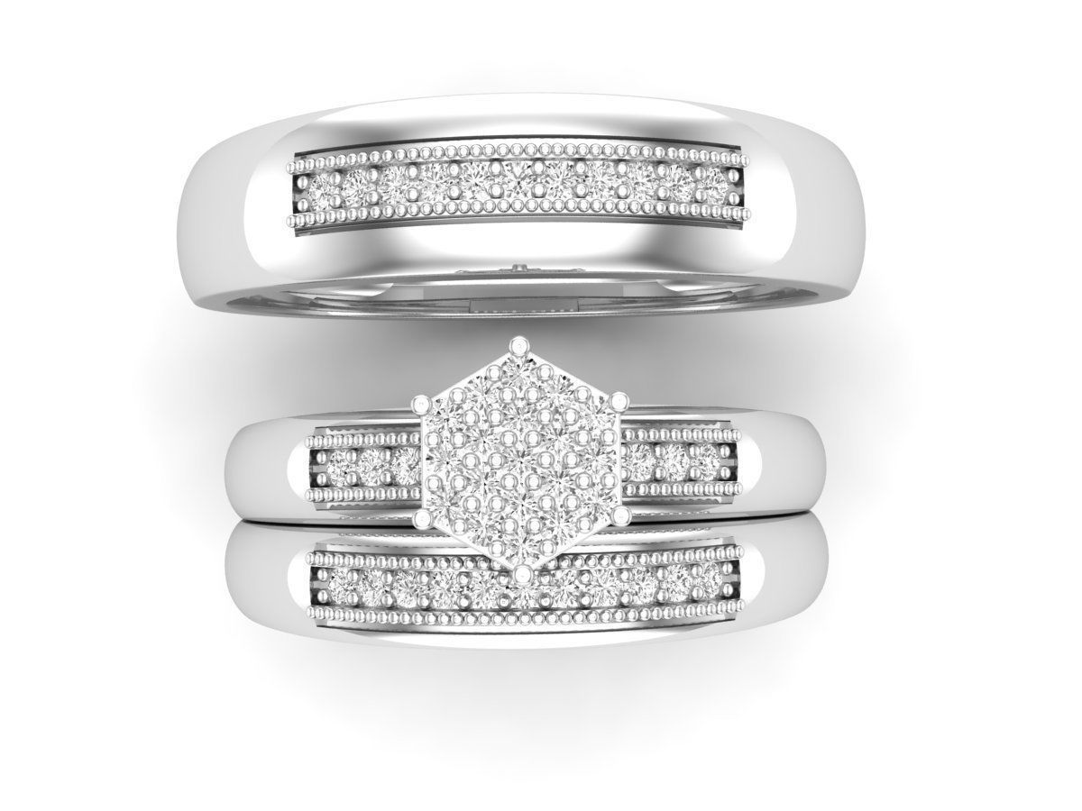 Trio de Argollas Matrimoniales con Solitario Hexagonal